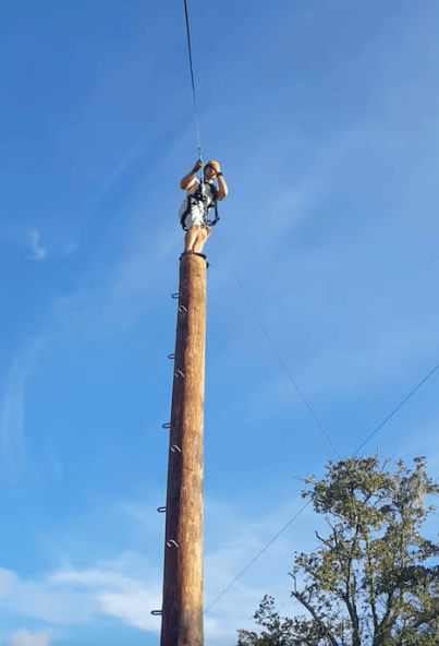 Now I was perched 30 feet in the air, squatting on the top of a wooden pole no more than 10 inches across.