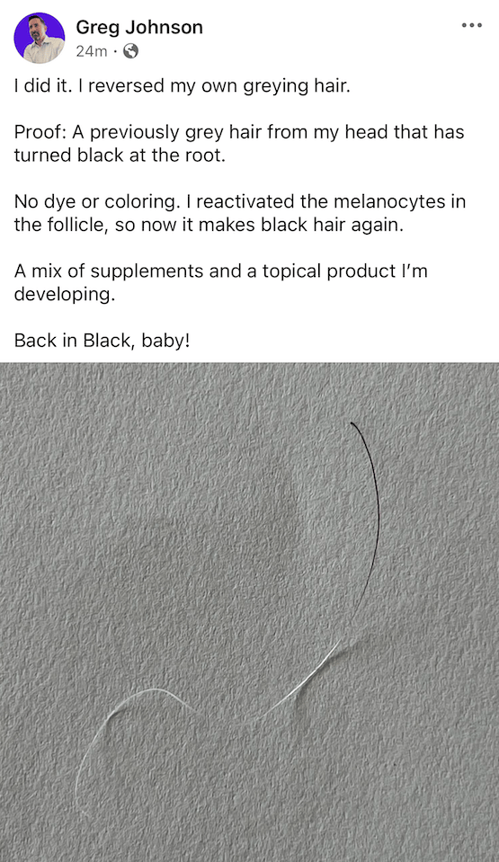 For those of you who would like to reverse hair loss or greying, keep an eye on this space.